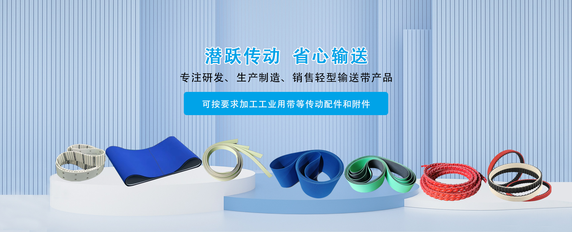 上海潛躍傳動科技有限公司是一家以研發、生產制造、銷售輕型輸送帶產品的專業公司,也是目前國內專業性、配套性較強的新材料輕型輸送帶研發生產高科技企業之一。
